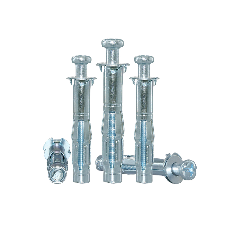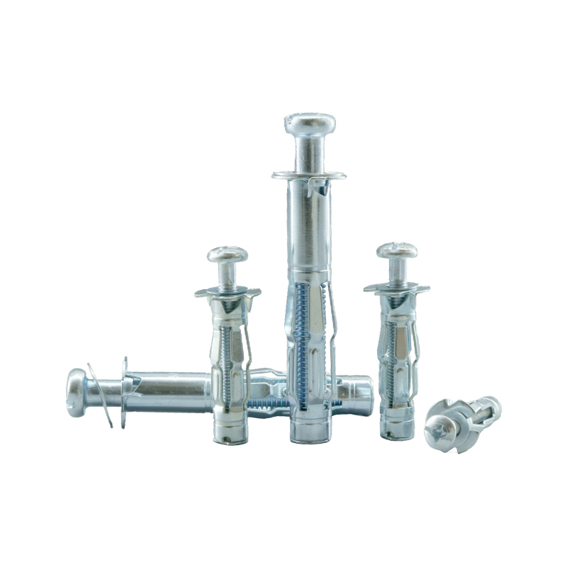 Dobas sienas enkurs ar krustveida pusapaļu galviņu: Šis stiprinājums apvieno krustveida pusapaļu galviņu ar dobu sienas enkuru, kas ir ideāli piemērots priekšmetu nostiprināšanai pie ģipškartona, ģipškartona vai citām dobām virsmām. Izgatavots no oglekļa tērauda (pieejams tādās pakāpēs kā 4.8, 8.8, 10.9) un bieži vien cinkots korozijas izturībai, tas nodrošina spēcīgu un uzticamu stiprinājumu. Lieliski piemērots būvniecības projektiem, interjera dekorēšanai un renovācijai — izmantojiet to, lai viegli uzstādītu plauktus, spoguļus vai armatūru uz dobām sienām.
