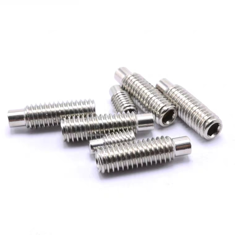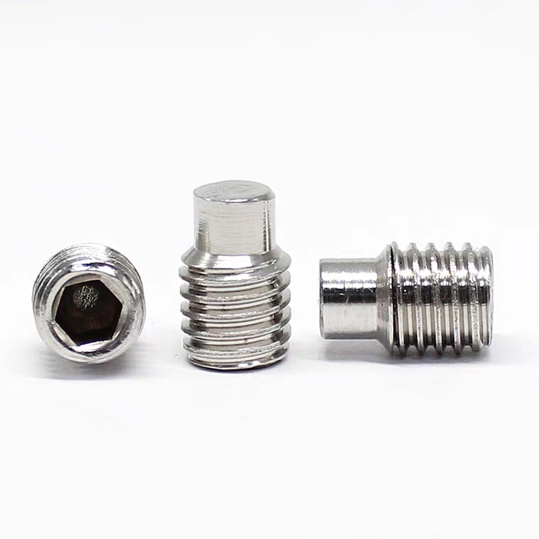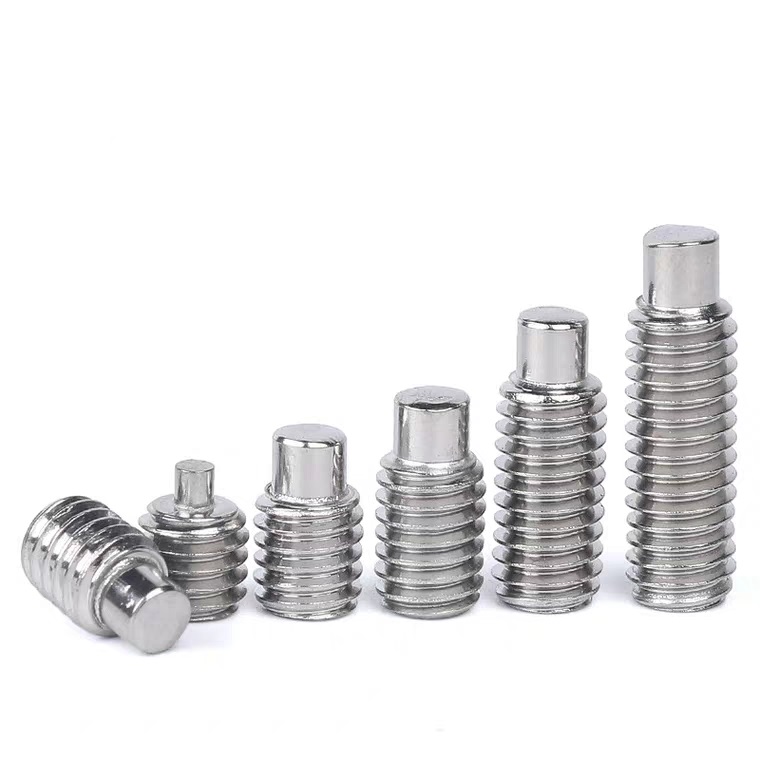 DIN 915 sešstūra uzgriežņu skrūves ar suņa galu: tās ir cilindriskas stiprinājuma detaļas ar sešstūra uzgriežņu atslēgu (uzstādīšanai, izmantojot sešstūra atslēgu) un suņa formas galu (cilindrisku izvirzījumu). Izgatavotas no tādiem materiāliem kā 45H leģētais tērauds (nodrošina augstu izturību) vai nerūsējošais tērauds (304/A2, 316/A4, piedāvājot izturību pret koroziju), un tām ir virsmas apstrāde, piemēram, melnais oksīds vai cinkošana. Suņa formas izvirzījums iestrādājas iepriekš apstrādātā rievā uz vārpstas, nodrošinot precīzu tādu detaļu kā zobratu, skriemeļu un savienojumu aksiālo pozicionēšanu. Tās tiek plaši izmantotas mašīnās, automobiļu transmisijās un precīzijas rūpnieciskajās iekārtās, atbilst DIN 915 standartam (ekvivalents ISO 4028) un ir pieejamas ar vītnes izmēriem no M1,6 līdz M24.