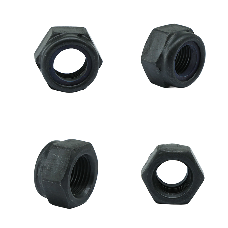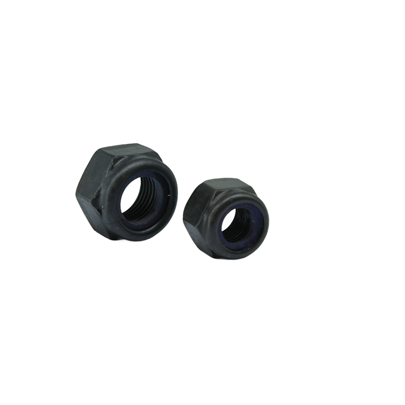 Cinkoti, ar melnu cinku pārklāti DIN982 (plāni - sešstūra) un DIN985 (smagi - sešstūra) sešstūra neilona fiksācijas uzgriežņi izmanto neilona ieliktni, lai radītu "dominējošo griezes momentu" — berze starp uzgriežņa un skrūves vītni novērš atslābšanu augstas vibrācijas apstākļos, piemēram, būvtehnikas vai rūpniecisko iekārtu darbības laikā. Izgatavoti galvenokārt no oglekļa tērauda (4,8. līdz 10,9. klase, ar 304/316 nerūsējošā tērauda alternatīvām korozīvai videi), melnais cinka pārklājums veido nodilumizturīgu un rūsas necaurlaidīgu slāni. Pieejami ar metriskajām vītnēm M2–M36 (gan rupjām, gan smalkām), tie ir būtiski lieljaudas tehnikas detaļu, bezceļu transportlīdzekļu detaļu un rūpniecisko armatūru nostiprināšanai, kam nepieciešama uzticama aizsardzība pret atslābšanu.