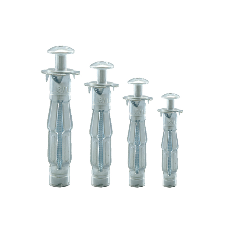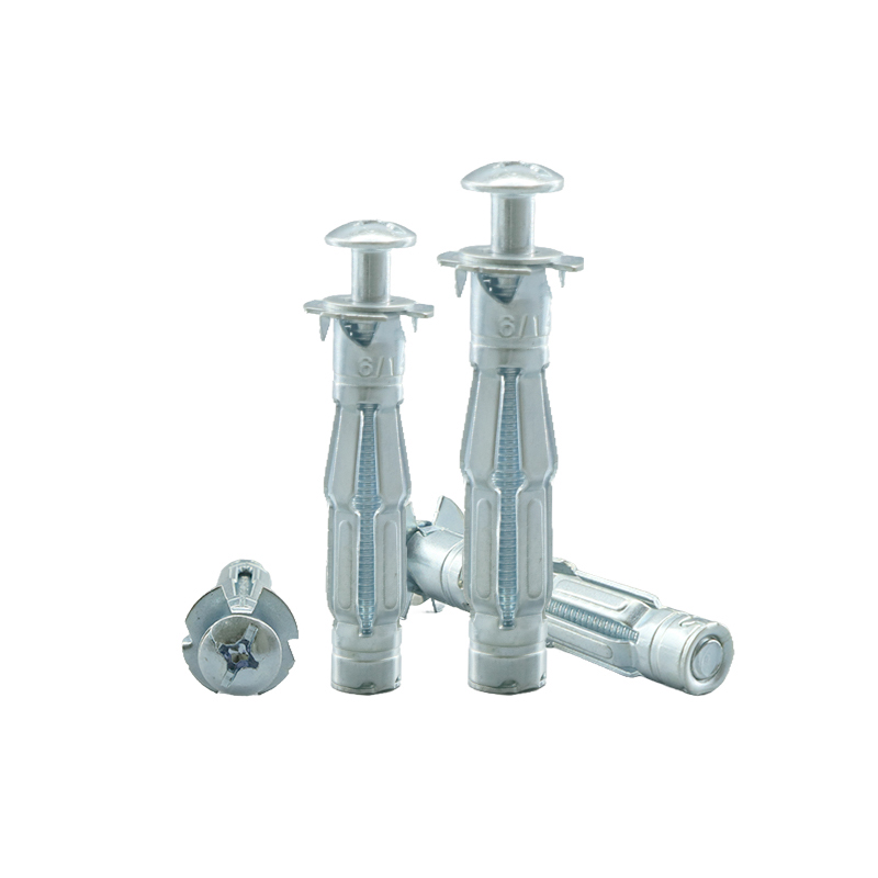 Dobas sienas enkurs ar krustveida pusapaļu plakanu galviņu: šis stiprinājums apvieno krustveida pusapaļu plakanu galviņu ar dobu sienas enkuru, kas ir ideāli piemērots priekšmetu nostiprināšanai pie ģipškartona, ģipškartona vai citām dobām virsmām. Izgatavots no oglekļa tērauda (pieejams tādās pakāpēs kā 4.8, 8.8, 10.9) un bieži vien cinkots korozijas izturībai, tas nodrošina spēcīgu un uzticamu stiprinājumu. Ideāli piemērots būvniecības projektiem, interjera dekorēšanai un renovācijai — izmantojiet to, lai viegli uzstādītu plauktus, spoguļus vai armatūru uz dobām sienām.