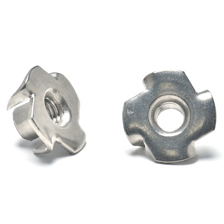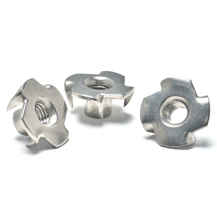 Nerūsējošā tērauda M3–M6 vienkāršie, pulētie sieviešu koka T-veida uzgriežņi ir T veida stiprinājumi ar četriem zariem. Zari var stingri iestrādāties kokā vai mīkstos materiālos, nodrošinot stabilu iekšējo vītni skrūvju savienojumam. Izgatavoti no nerūsējošā tērauda (ar labu izturību pret koroziju, piemēroti lietošanai ārā vai mitrā vidē), vienkārši pulētā virsma ir gluda un nerūsējoša. Tie ir paredzēti kokapstrādei, mēbeļu ražošanai (piemēram, krēslu kājām, plauktiem) un āra konstrukciju būvniecībai (piemēram, žogiem, augu statīviem), novēršot uzgriežņu griešanos lietošanas laikā.