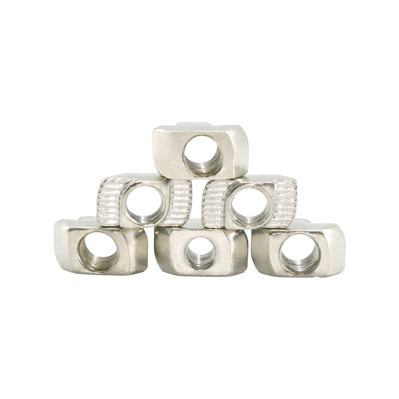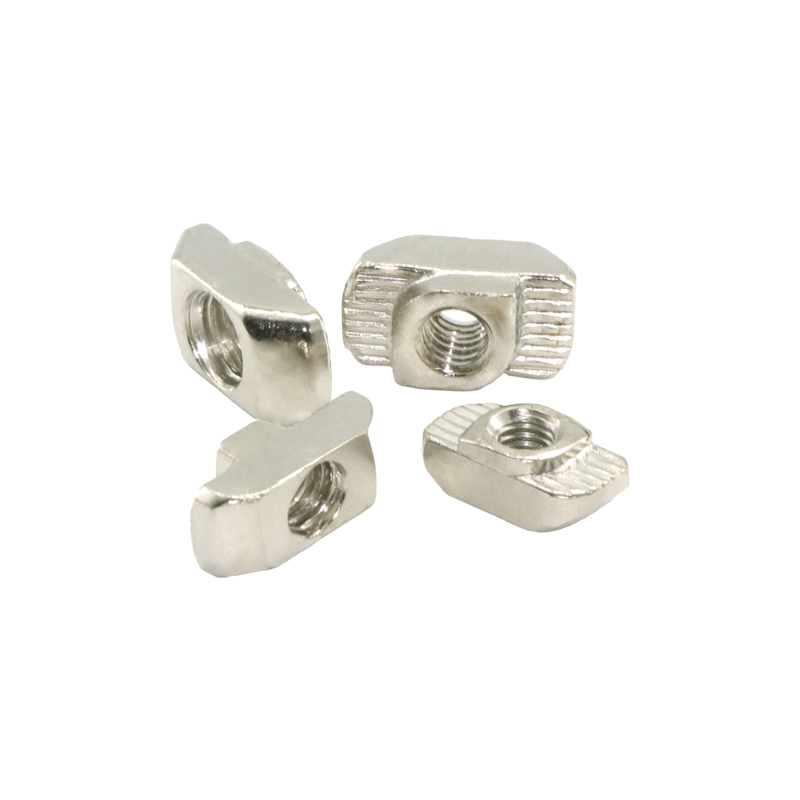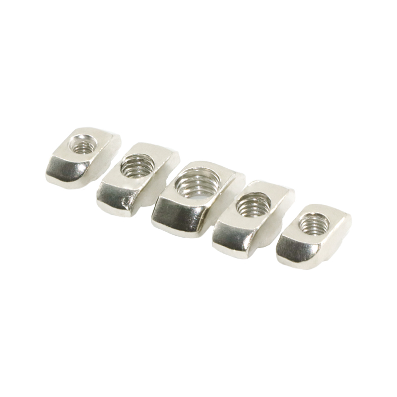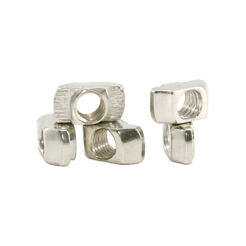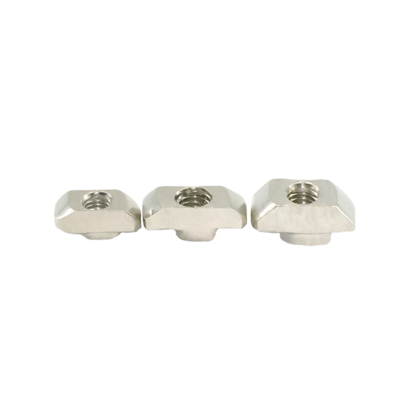T veida uzgrieznis: Tam ir raksturīgs T veida dizains, kas ļauj to precīzi ievietot profilu (piemēram, alumīnija profilu) rievās. Izgatavots no metāla materiāliem, piemēram, 304 nerūsējošā tērauda, oglekļa tērauda utt., tas piedāvā labu izturību pret koroziju un augstu izturību. Šis uzgrieznis ir uzticams drošu savienojumu veidošanā, to plaši izmanto būvniecībā alumīnija profilu karkasu montāžai, detaļu montāžas mašīnās un rūpnieciskās iekārtās stabilu konstrukciju būvniecībai.